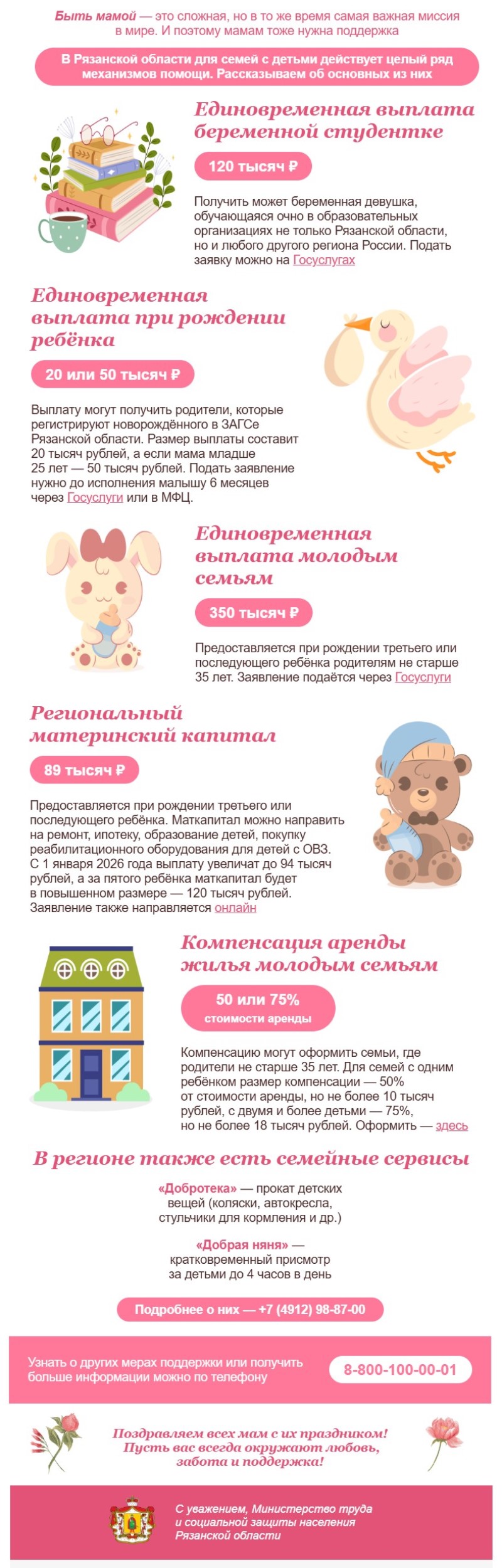 В Рязанской области для семей с детьми действует целый ряд механизмов помощи. Рассказываем об основных из них.